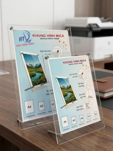 Khung Hình Mica Chân Đế Inox – Sang Trọng, Cứng Cáp, Hiện Đại